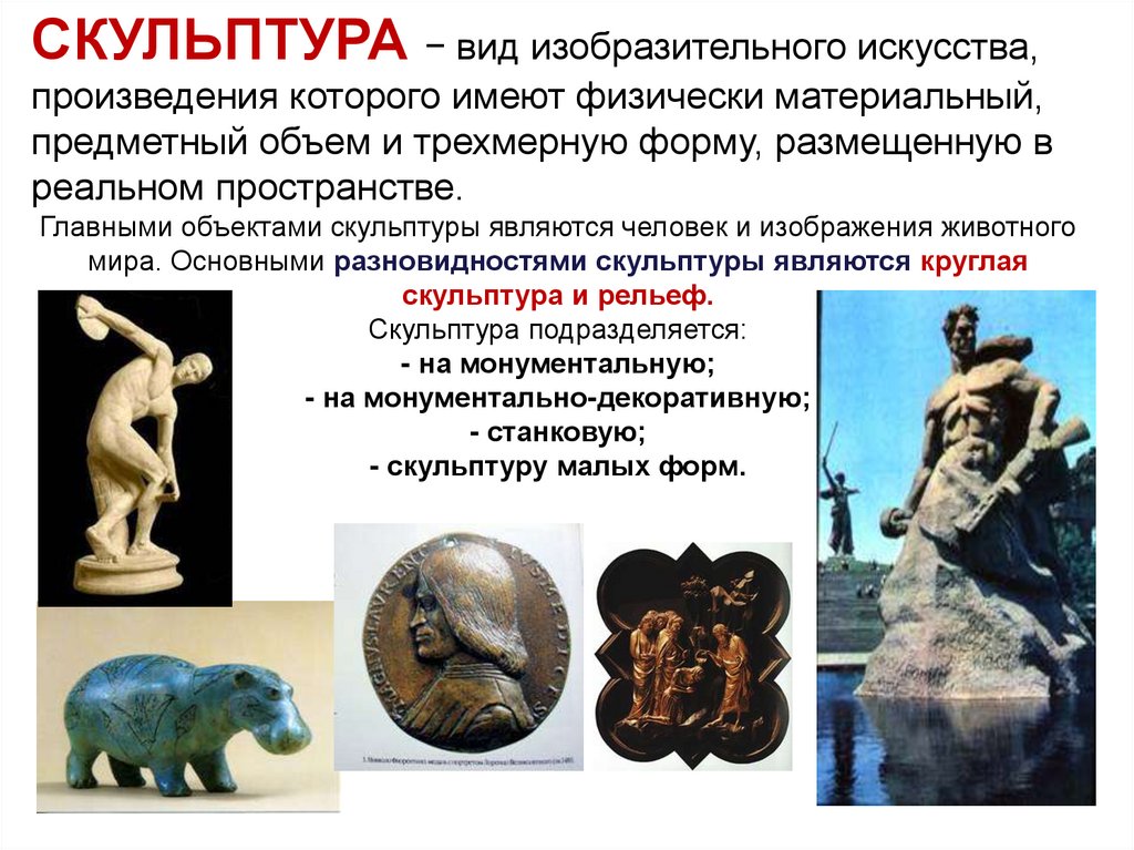 СКУЛЬПТУРА − вид изобразительного искусства,произведения которого имеют физически материальный,