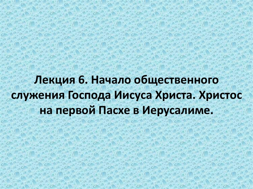 1. Лекция 6. Начало общественного служения Господа Иисуса Христа. Христос на первой Пасхе в Иерусалиме.