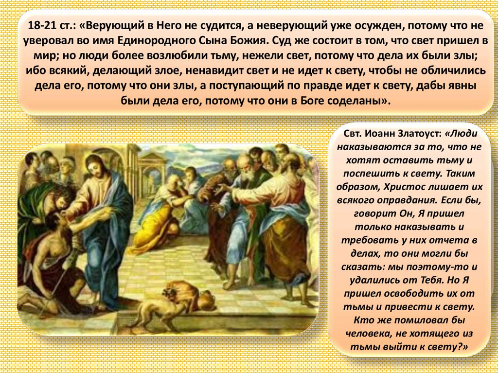 3.2 И наблюдали за Ним, не исцелит ли его в субботу, чтобы обвинить Его.