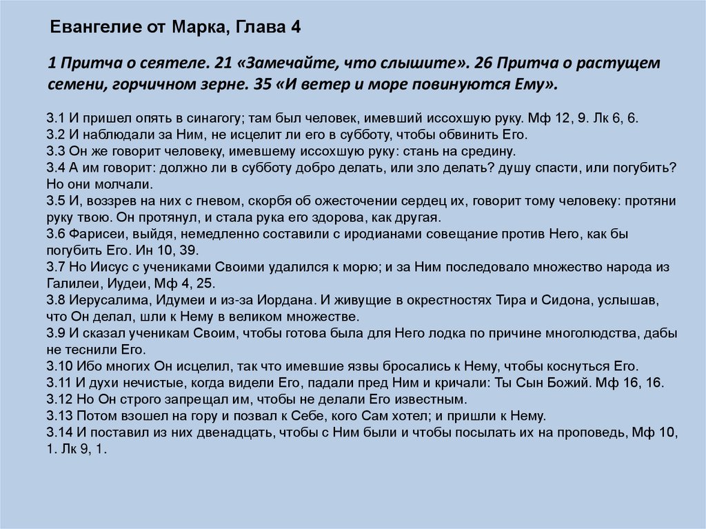 Евангелие от Марка, Глава 41 Притча о сеятеле. 21 «Замечайте, что слышите». 26 Притча о растущем
