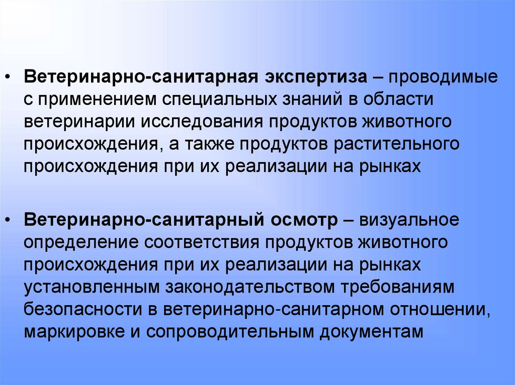 • Ветеринарно-санитарная экспертиза – проводимыес применением специальных знаний в области