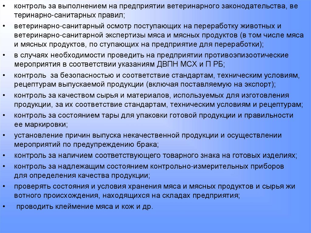контроль за выполнением на предприятии ветеринарного законодательства, ве