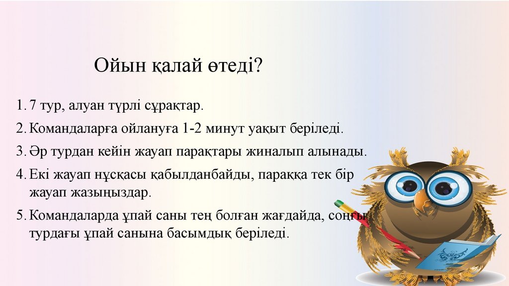 Ойын қалай өтеді?1. 7 тур, алуан түрлі сұрақтар.