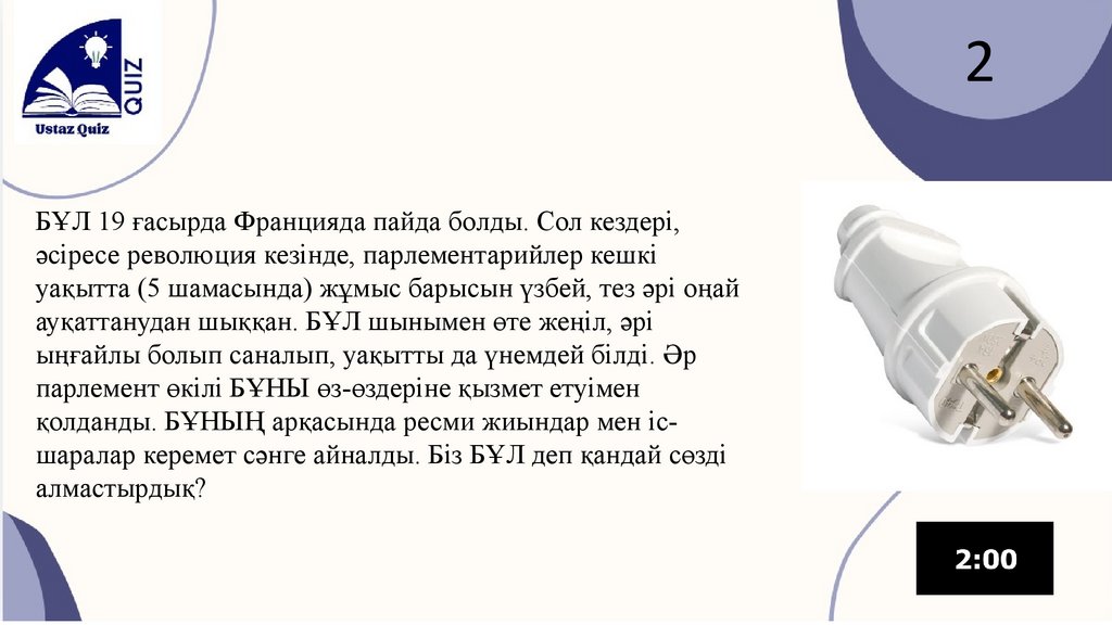 2. Командаларға ойлануға 1-2 минут уақыт беріледі.