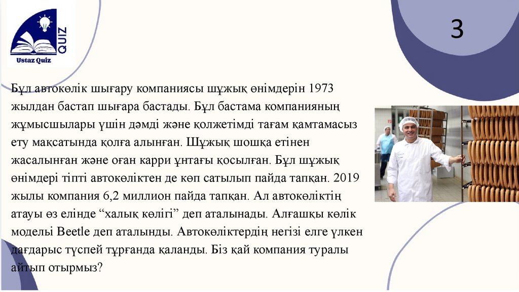3Бұл автокөлік шығару компаниясы шұжық өнімдерін 1973