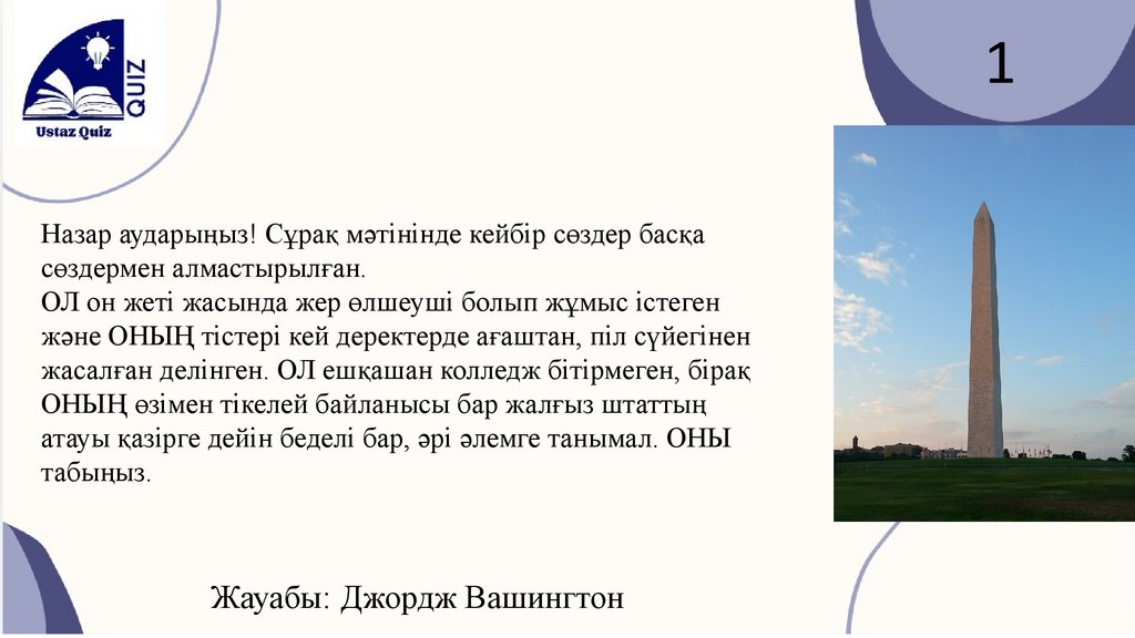Жауабы: Джордж Вашингтон