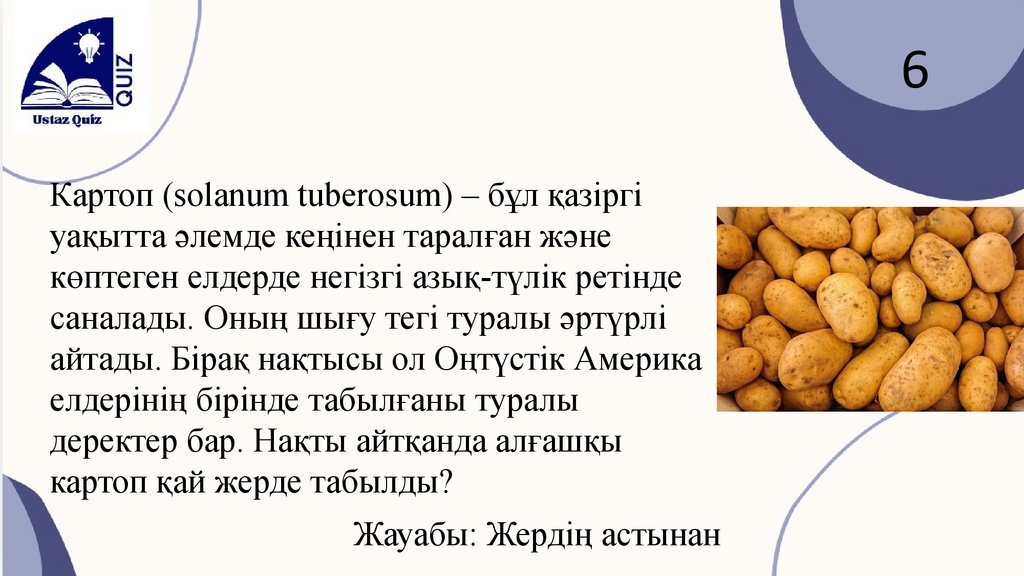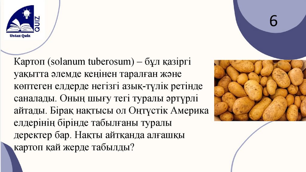 6Картоп (solanum tuberosum) – бұл қазіргі