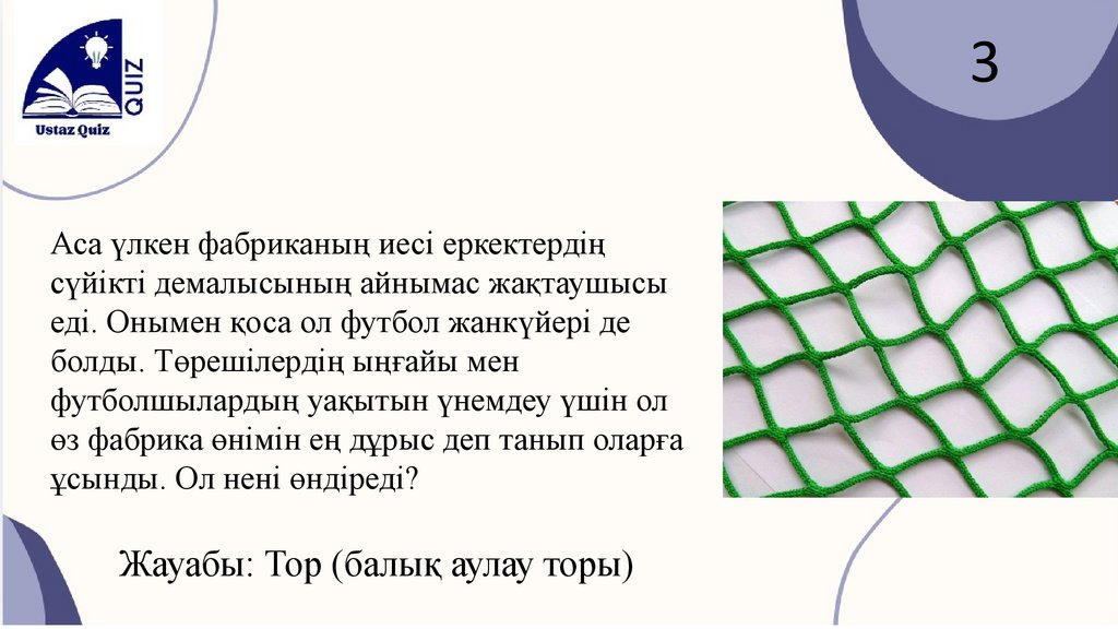 Жауабы: Тор (балық аулау торы)