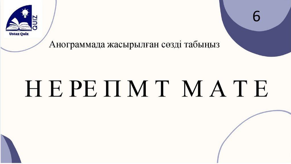 6Анограммада жасырылған сөзді табыңыз