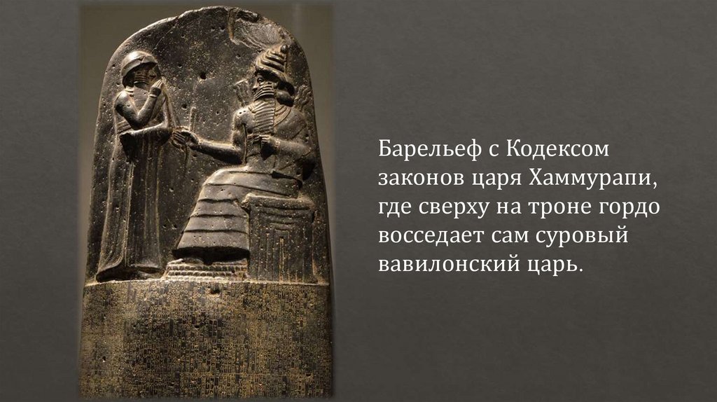 Барельеф с Кодексомзаконов царя Хаммурапи,