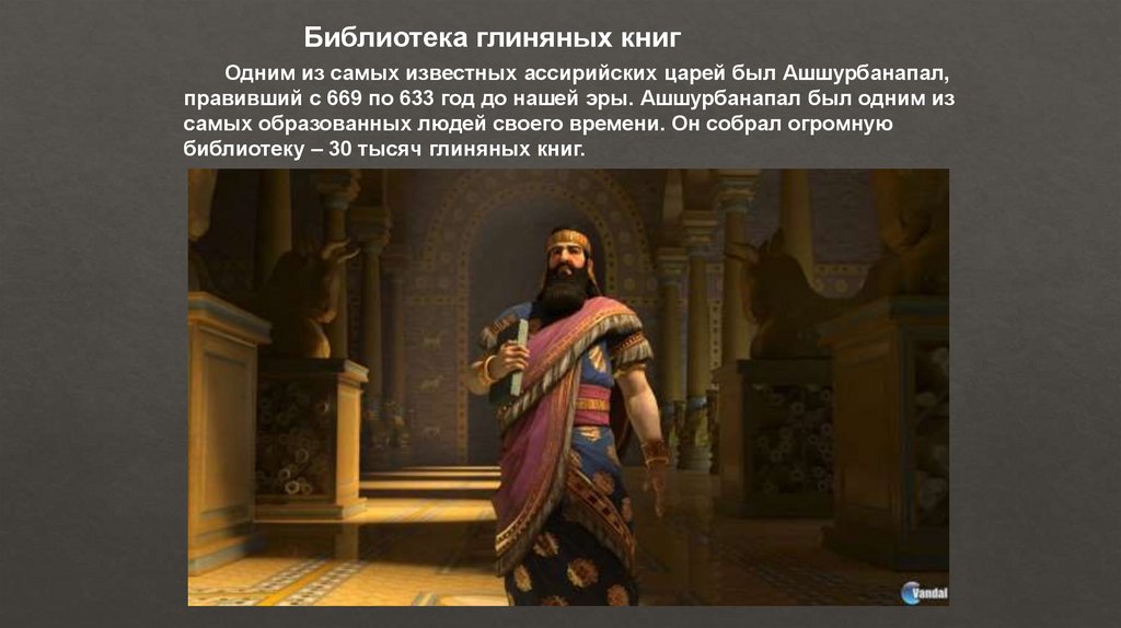 правивший с 669 по 633 год до нашей эры. Ашшурбанапал был одним из