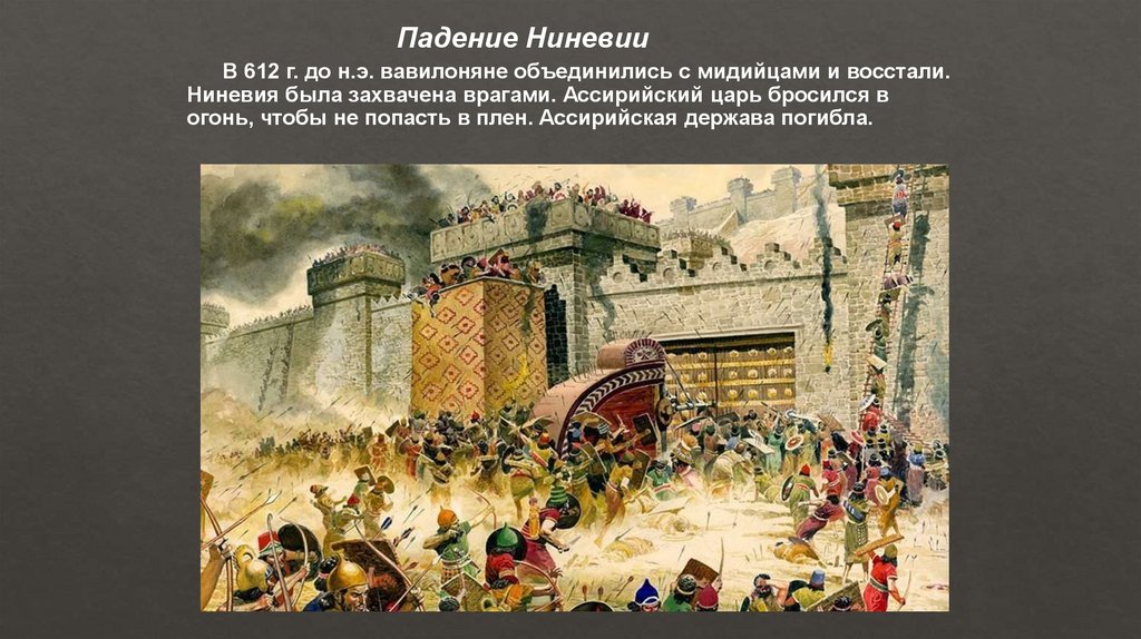 огонь, чтобы не попасть в плен. Ассирийская держава погибла.