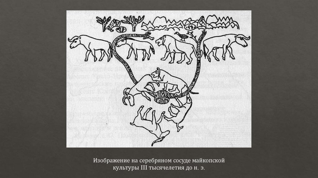 Изображение на серебряном сосуде майкопскойкультуры III тысячелетия до н. э.