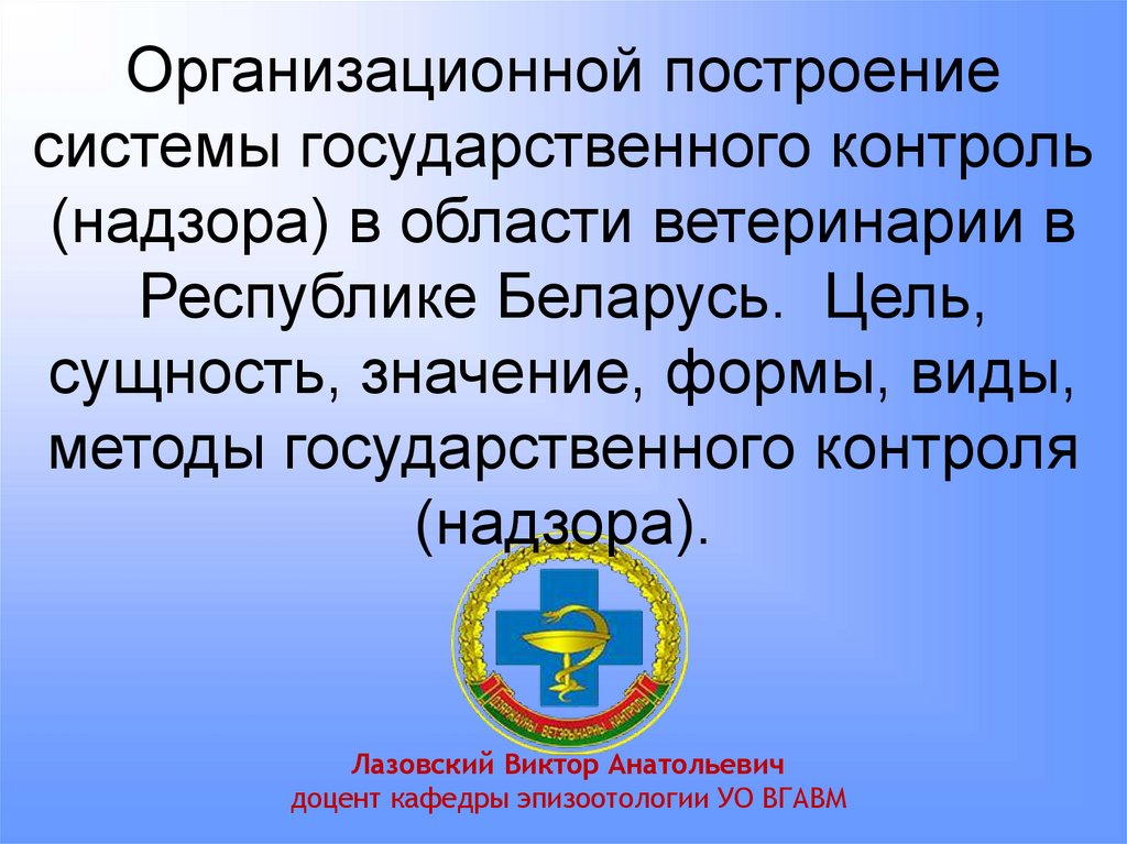 требований ветеринарного законодательства РБЗадачи: