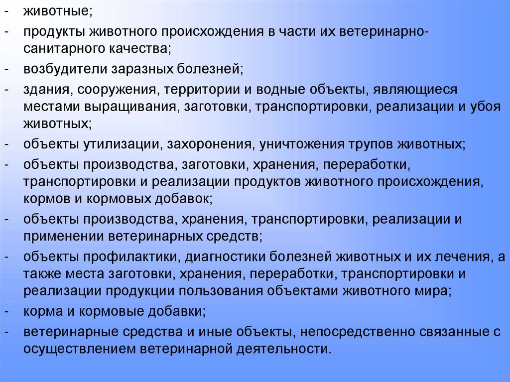 за объектами отношений в области ветеринарной деятельности.