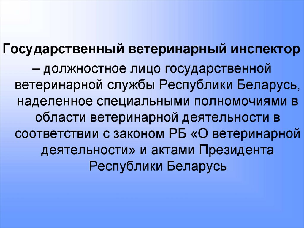 Государственный ветеринарный инспектор– должностное лицо государственной
