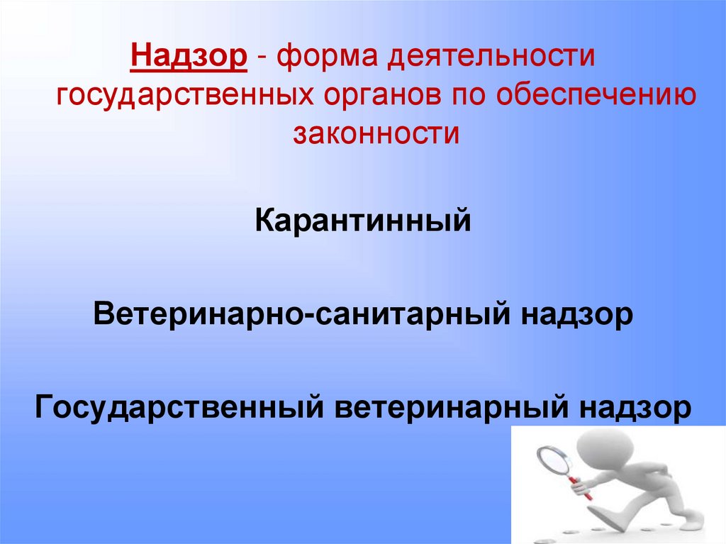 Надзор - форма деятельностигосударственных органов по обеспечению