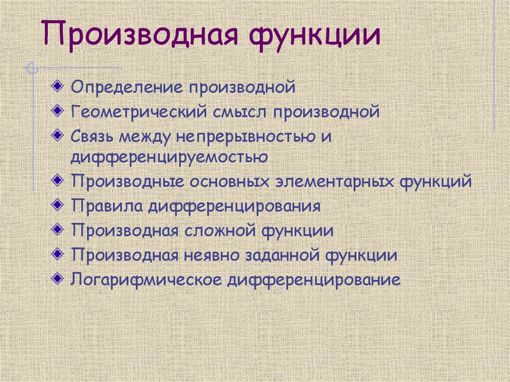 Пусть u = u(x) и v = v(x) – дифференцируемые функции.Функция y u( x )