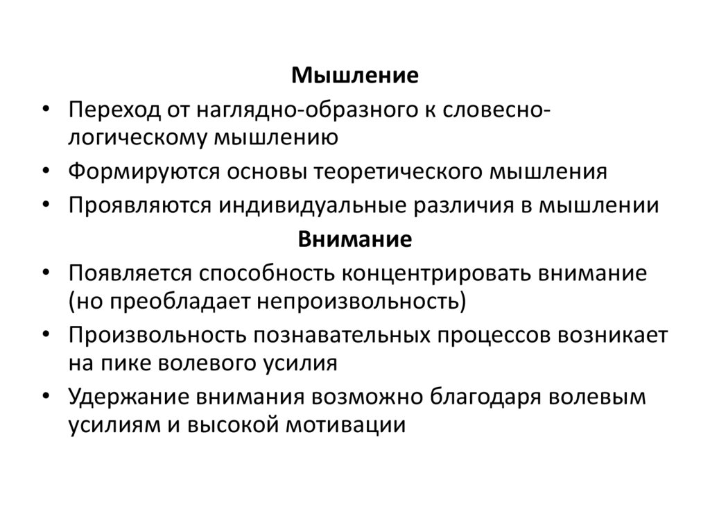 • Проявляются индивидуальные различия в мышлении