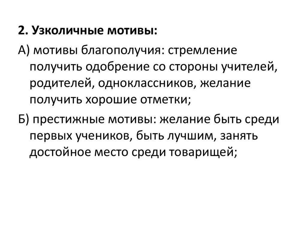 2. Узколичные мотивы:А) мотивы благополучия: стремление