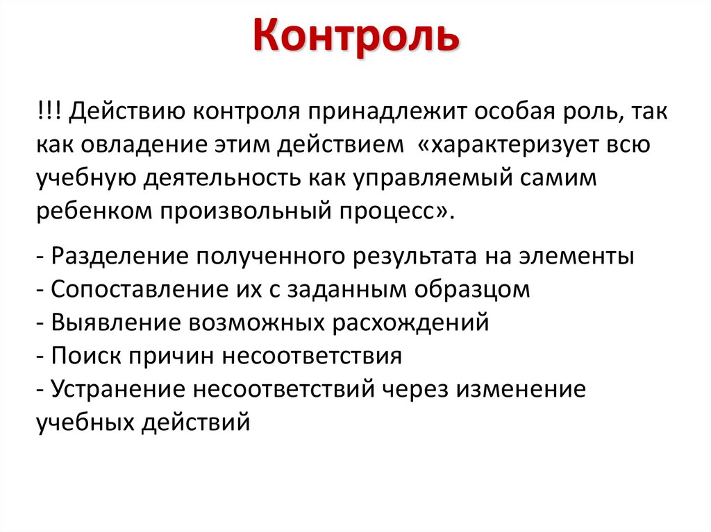 Контроль!!! Действию контроля принадлежит особая роль, так