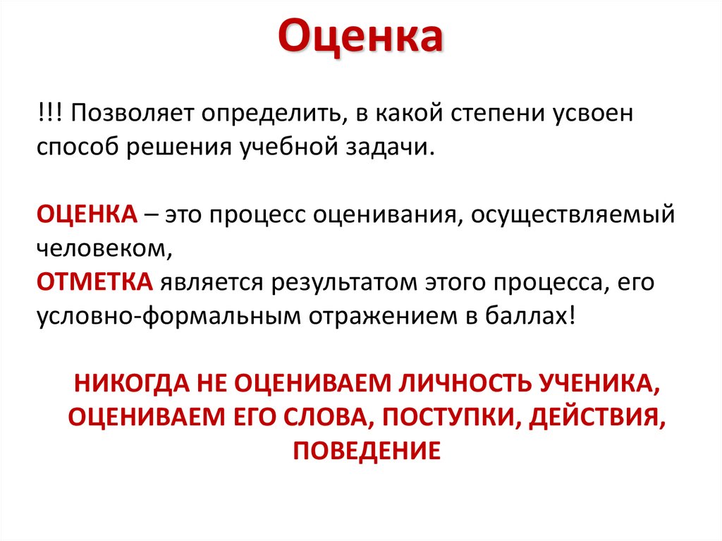 ОЦЕНКА – это процесс оценивания, осуществляемый