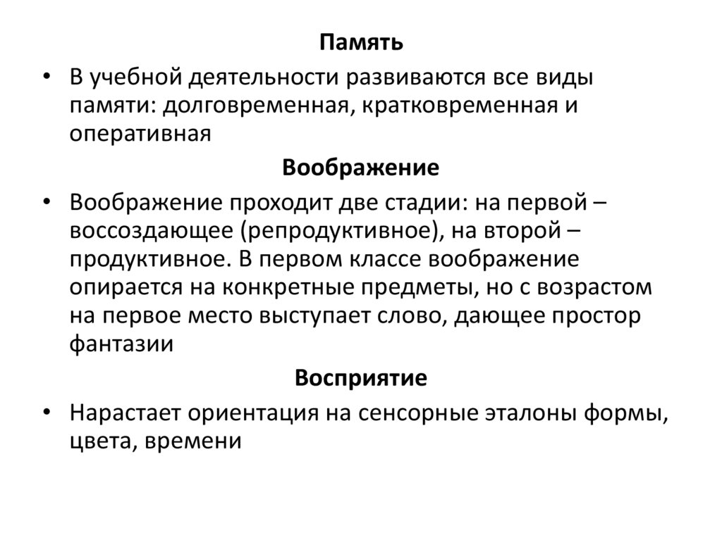 Память• В учебной деятельности развиваются все виды
