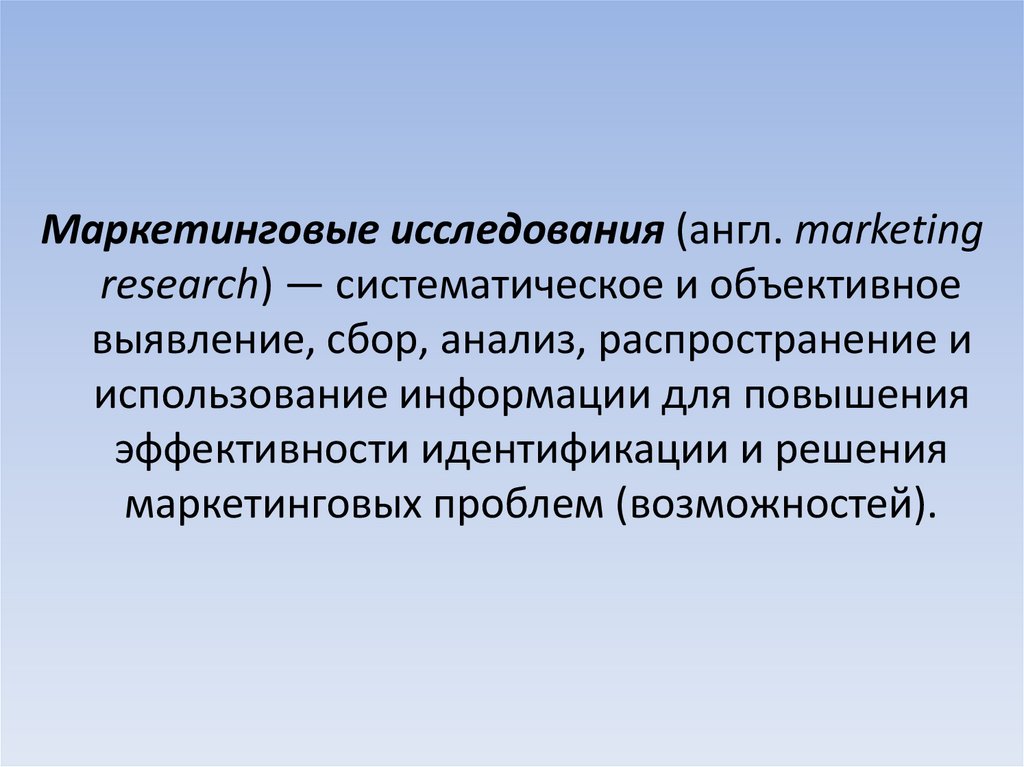 Маркетинговые исследования (англ. marketingresearch) — систематическое и объективное