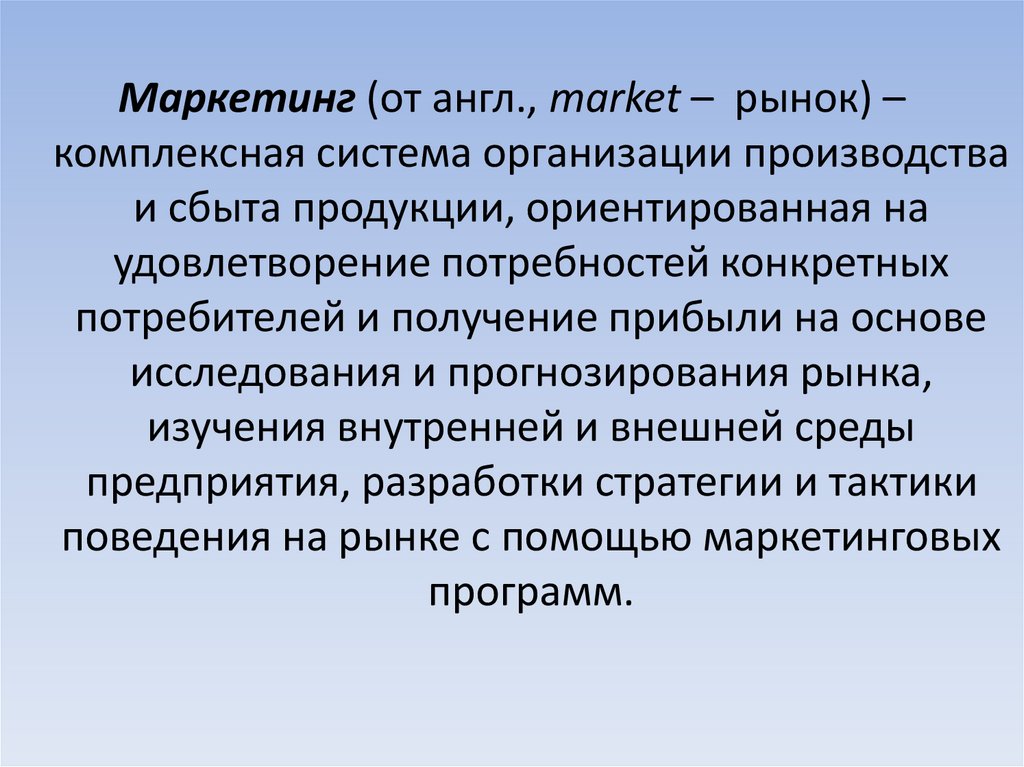 Маркетинг (от англ., market – рынок) –комплексная система организации производства