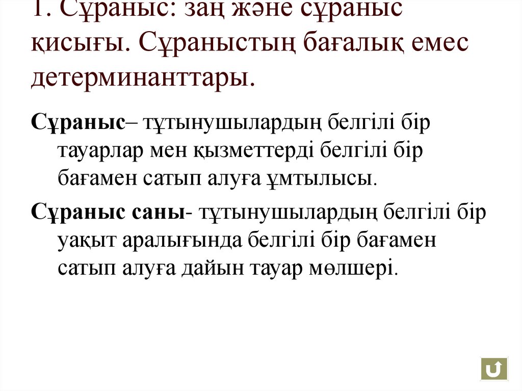 1. Сұраныс: заң және сұранысқисығы. Сұраныстың бағалық емес