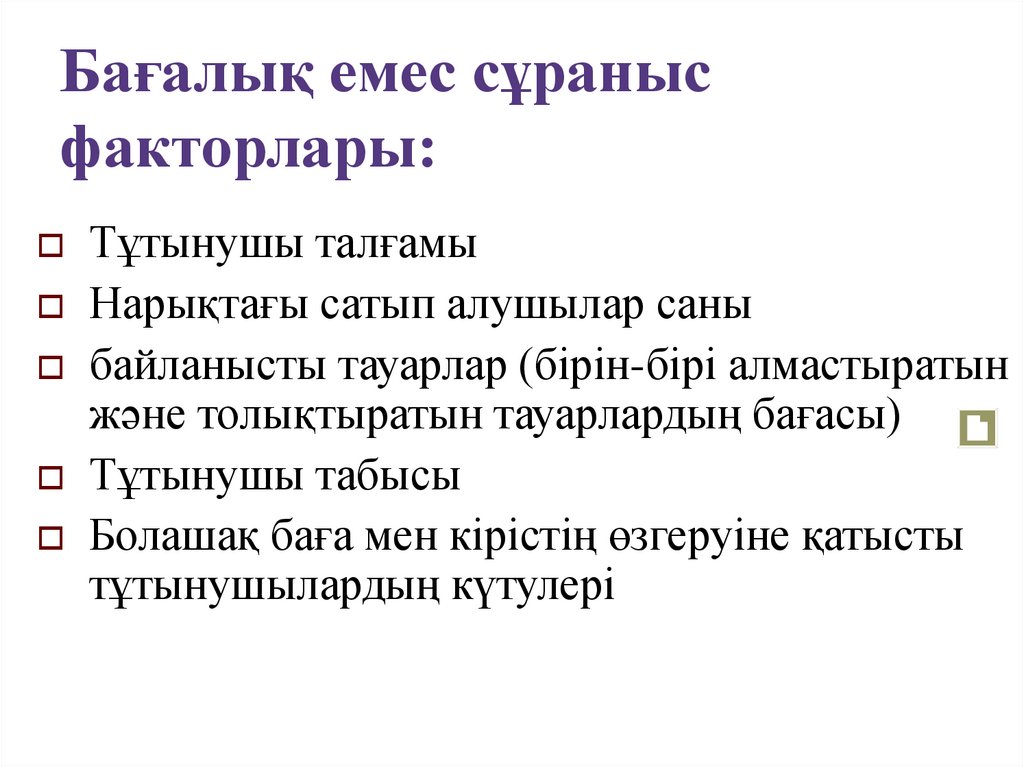 Бағалық емес сұранысфакторлары: