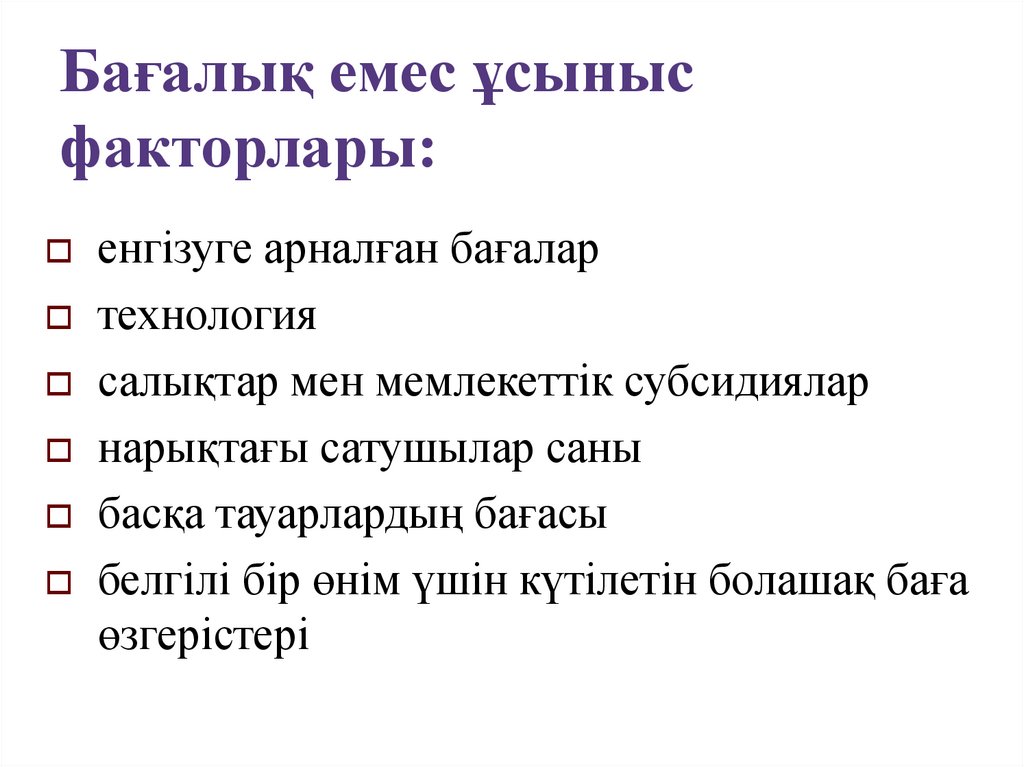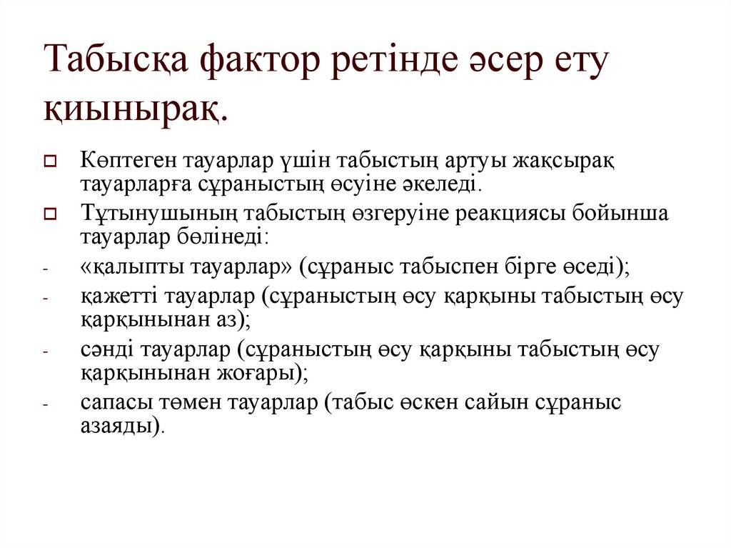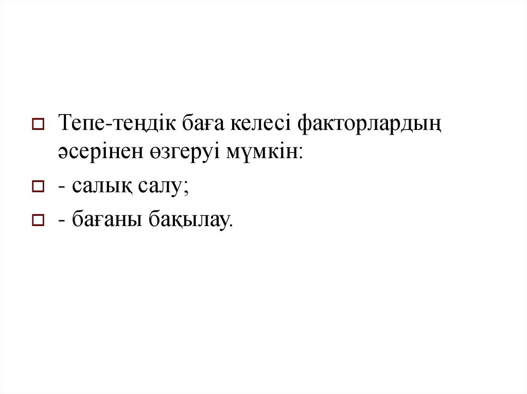 Тепе-теңдік баға келесі факторлардыңәсерінен өзгеруі мүмкін: