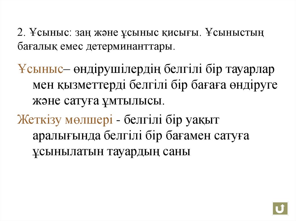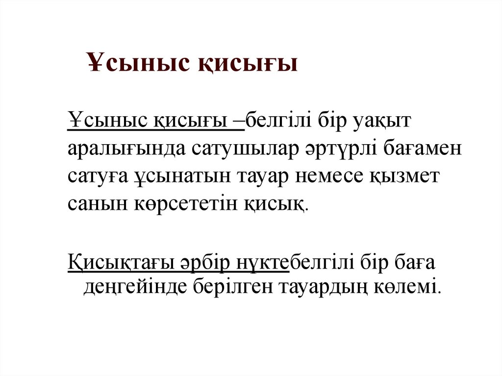 2. Ұсыныс: заң және ұсыныс қисығы. Ұсыныстыңбағалық емес детерминанттары.
