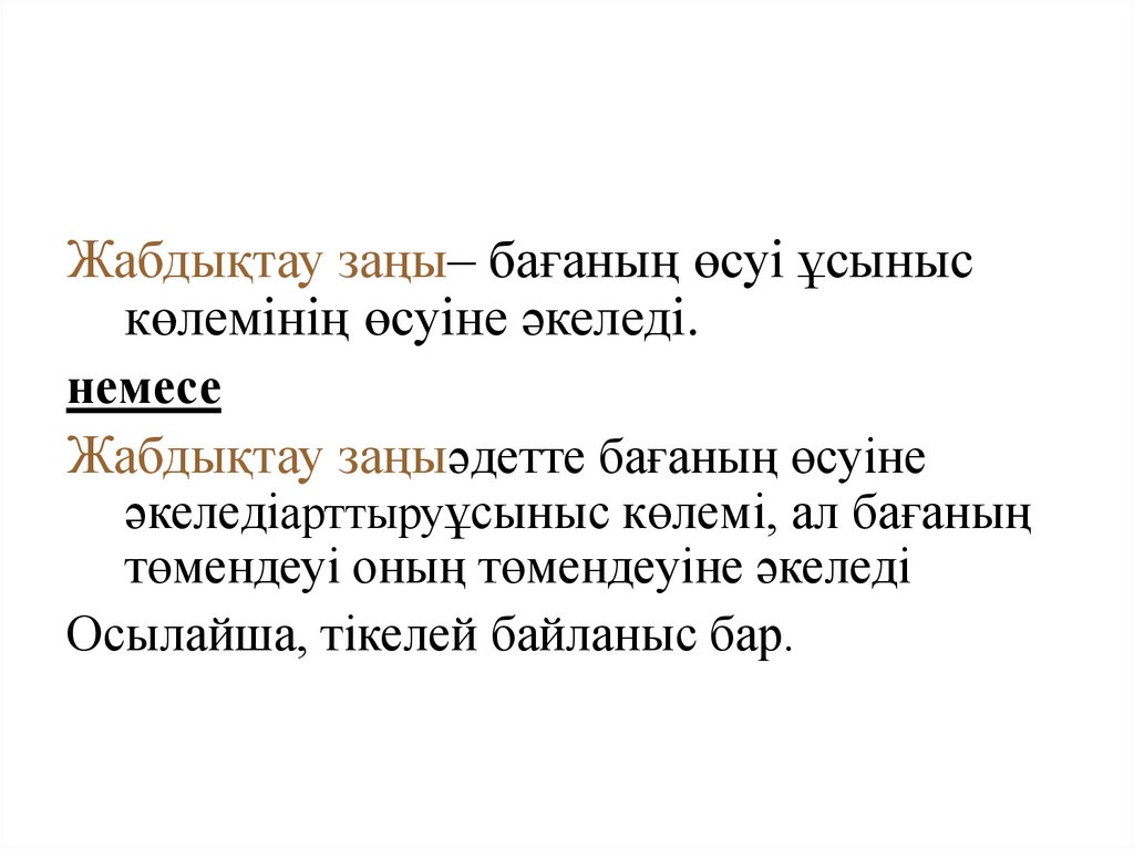 төмен бағада көп, ал жоғары бағада аз