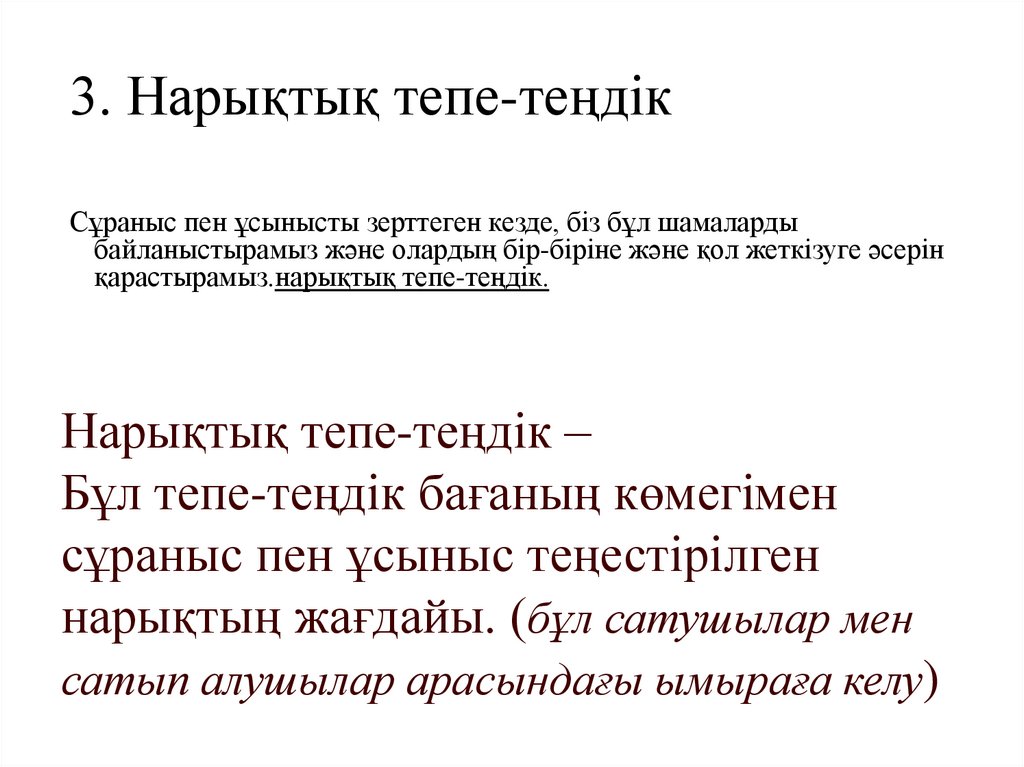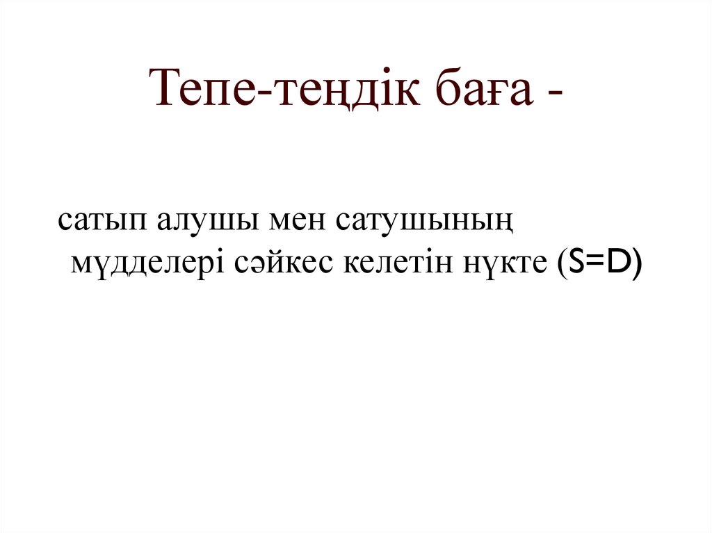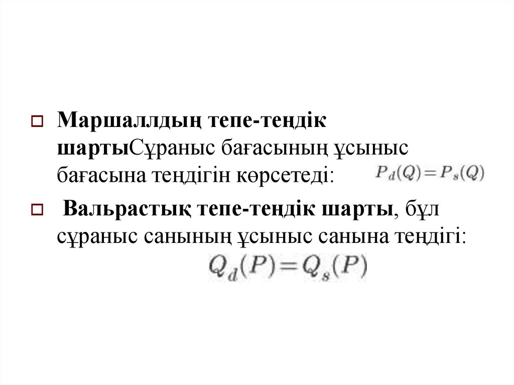 Маршаллдың тепе-теңдікшартыСұраныс бағасының ұсыныс
