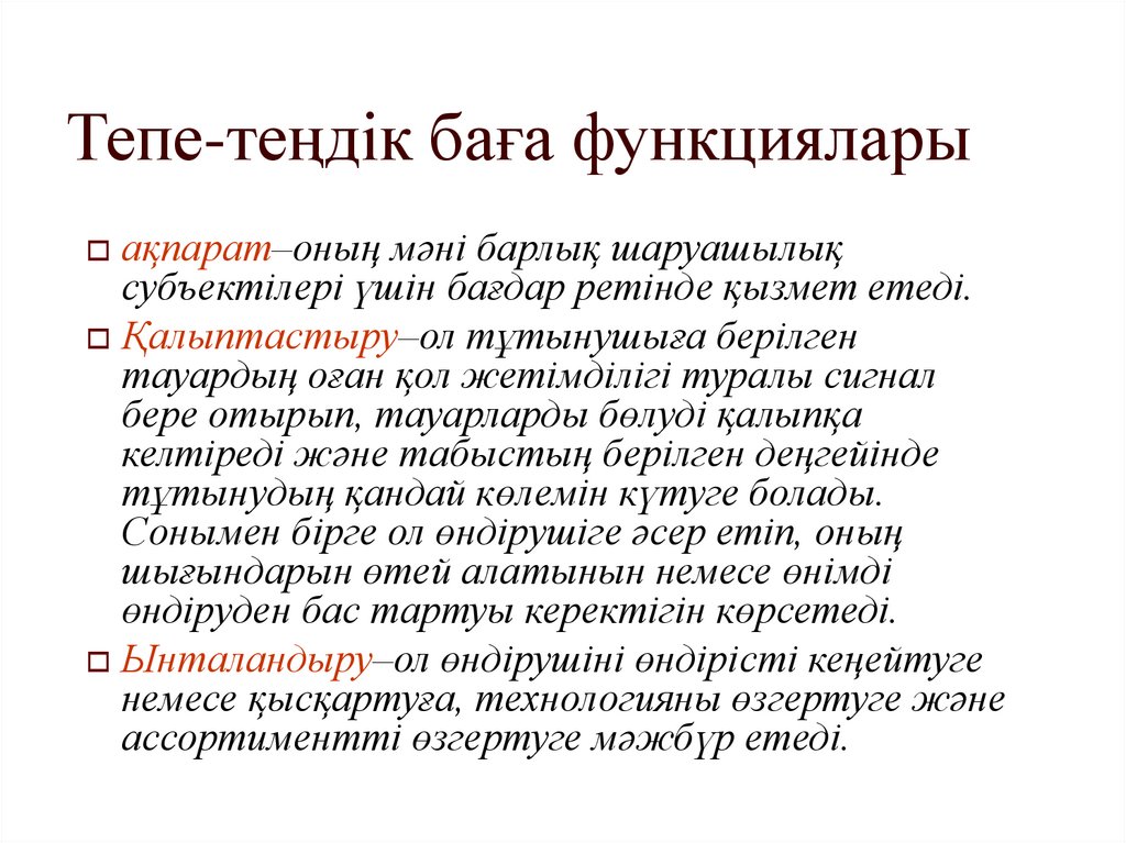 Тепе-теңдік баға функцияларыақпарат–оның мәні барлық шаруашылық