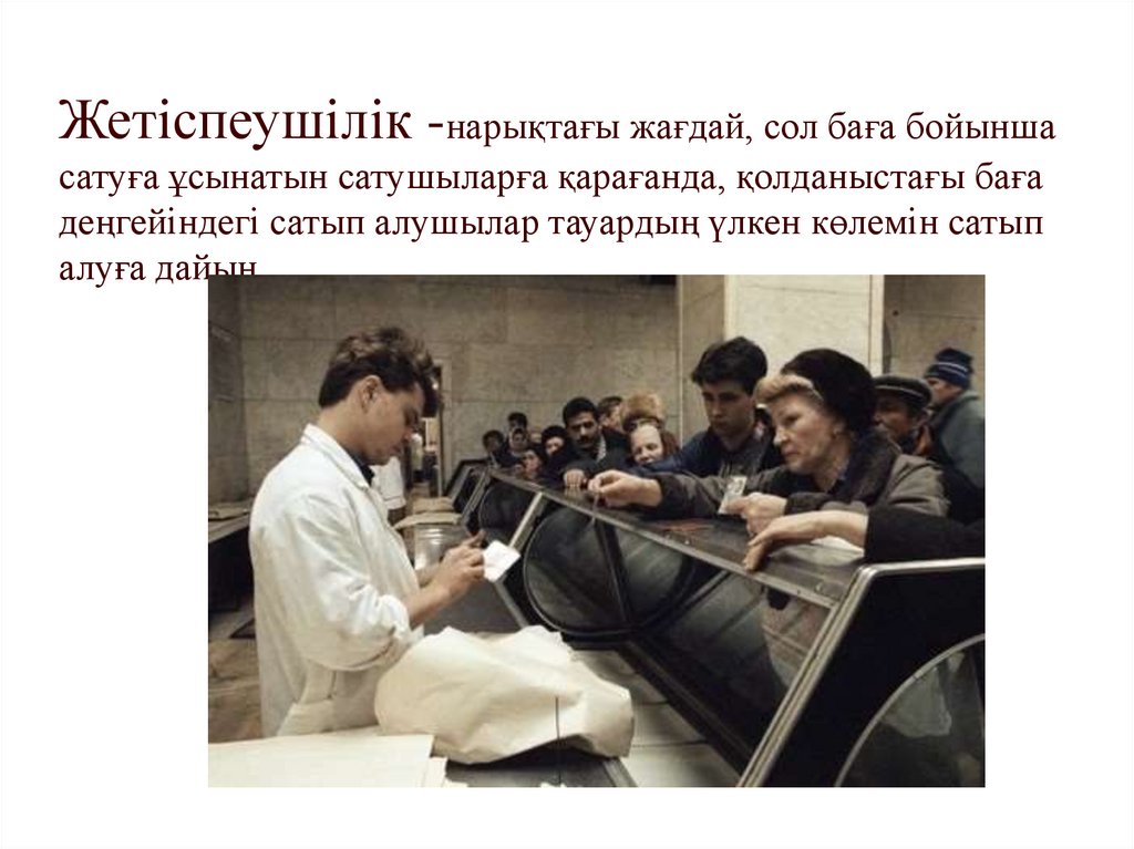 Жетіспеушілік -нарықтағы жағдай, сол баға бойыншасатуға ұсынатын сатушыларға қарағанда, қолданыстағы баға