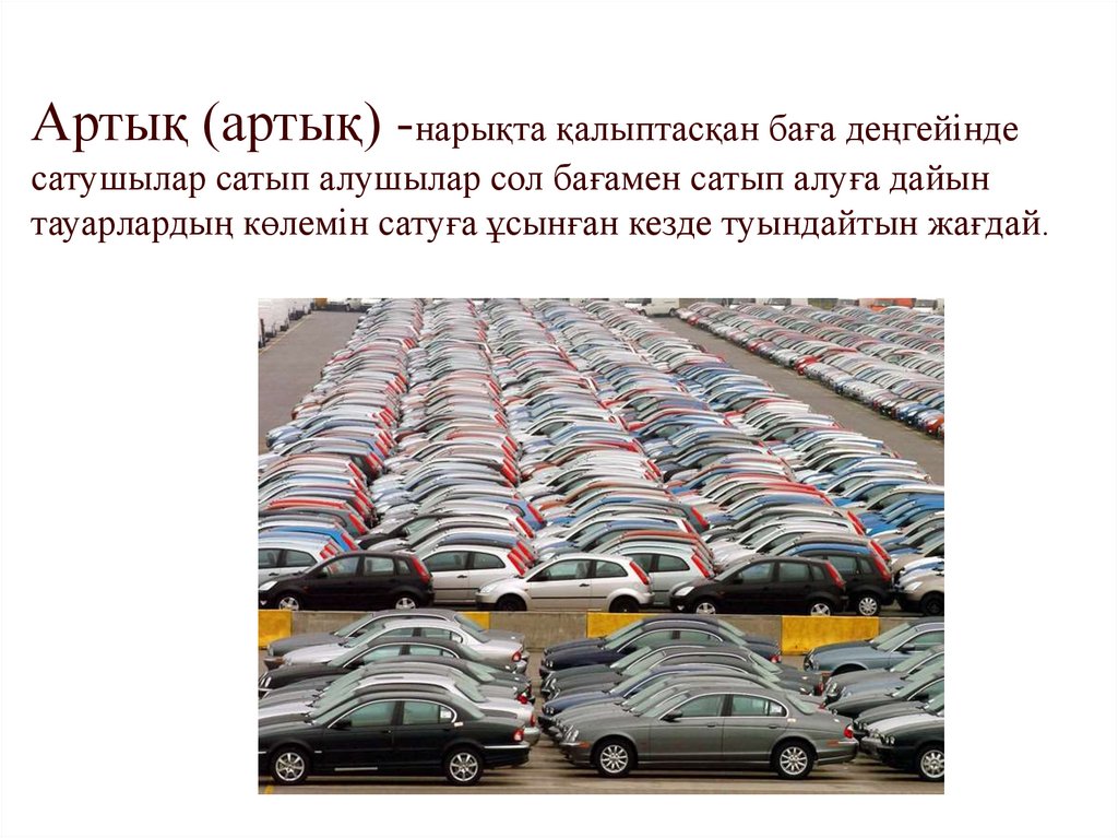 Артық (артық) -нарықта қалыптасқан баға деңгейіндесатушылар сатып алушылар сол бағамен сатып алуға дайын