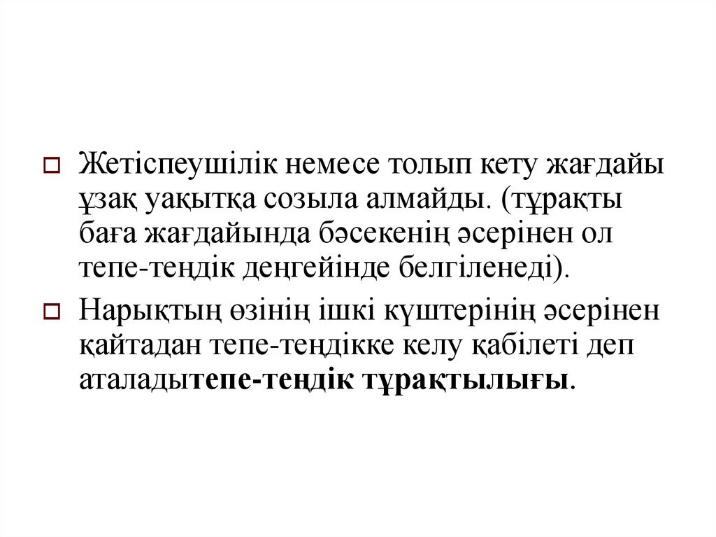 Жетіспеушілік немесе толып кету жағдайыұзақ уақытқа созыла алмайды. (тұрақты
