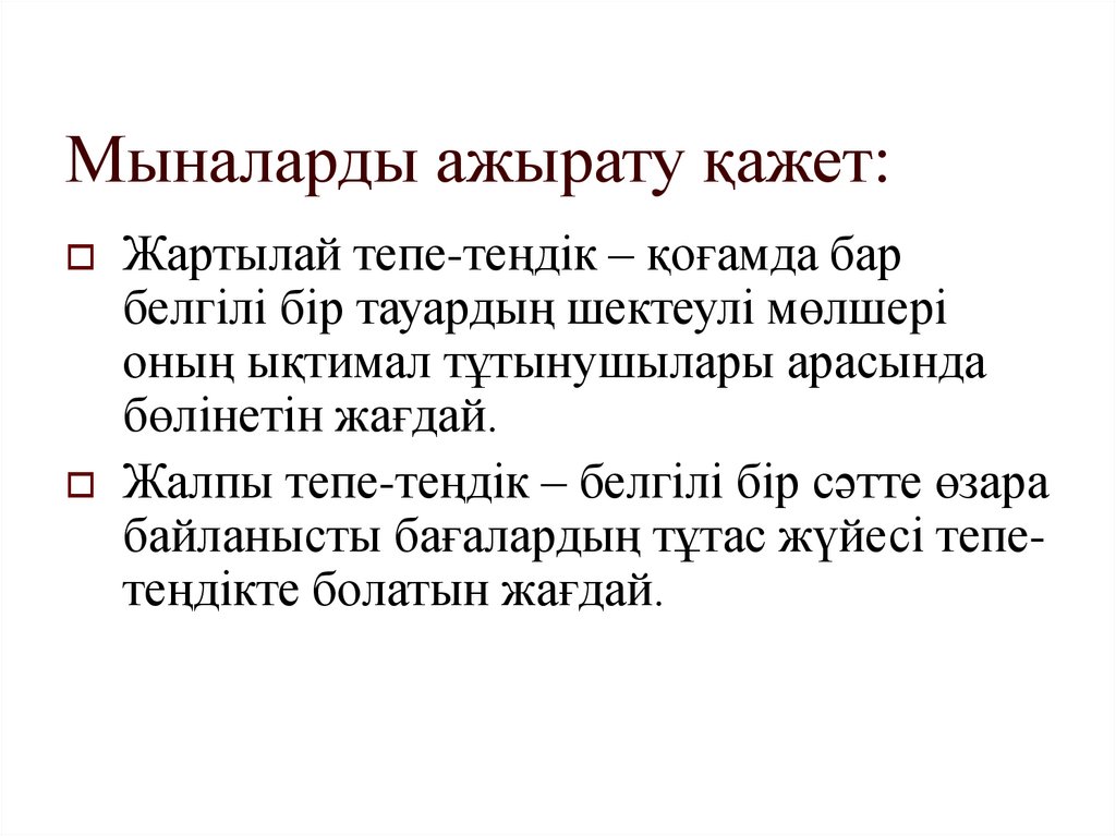 Мыналарды ажырату қажет:Жартылай тепе-теңдік – қоғамда бар