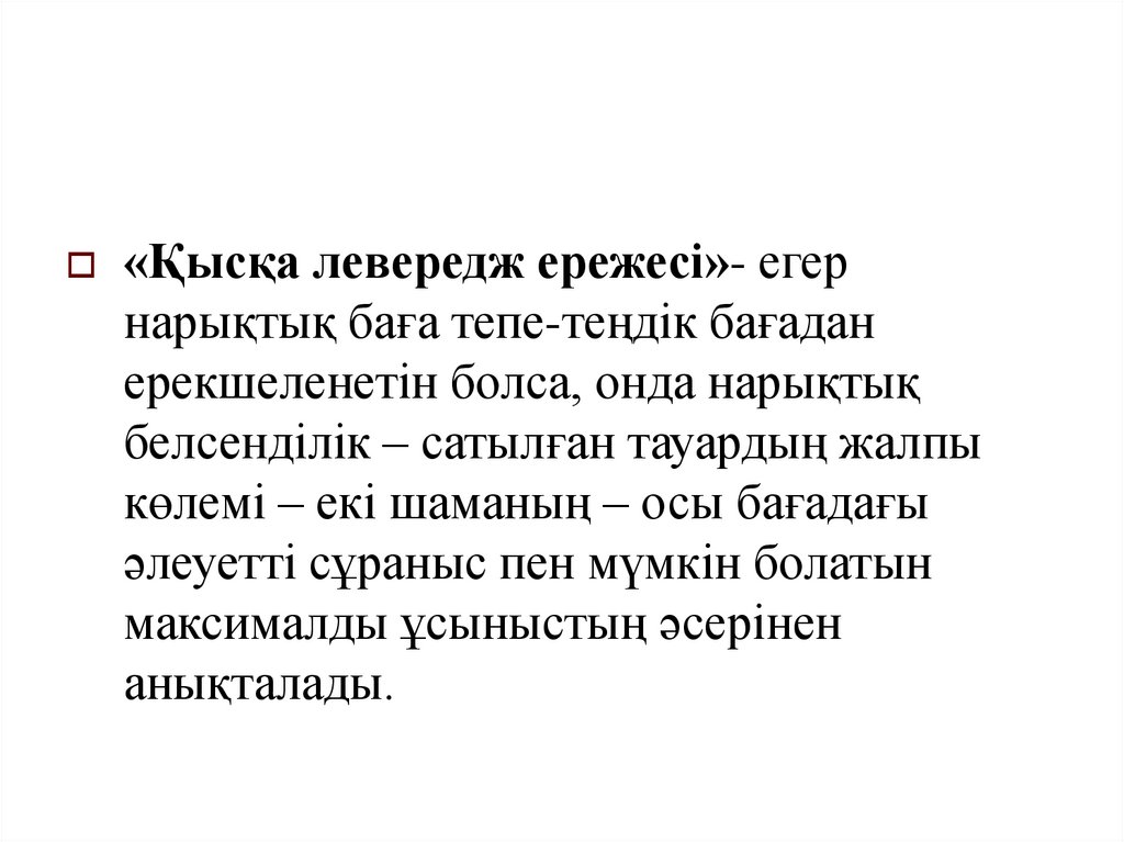 «Қысқа левередж ережесі»- егернарықтық баға тепе-теңдік бағадан