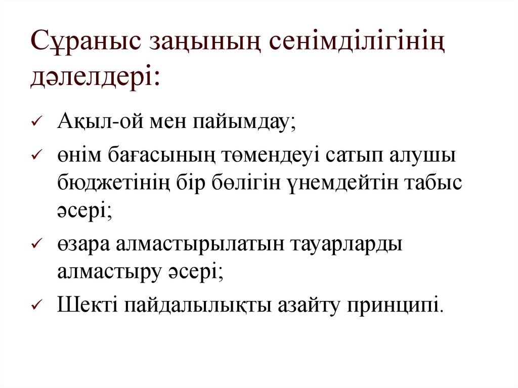 Сұраныс заңының сенімділігініңдәлелдері: