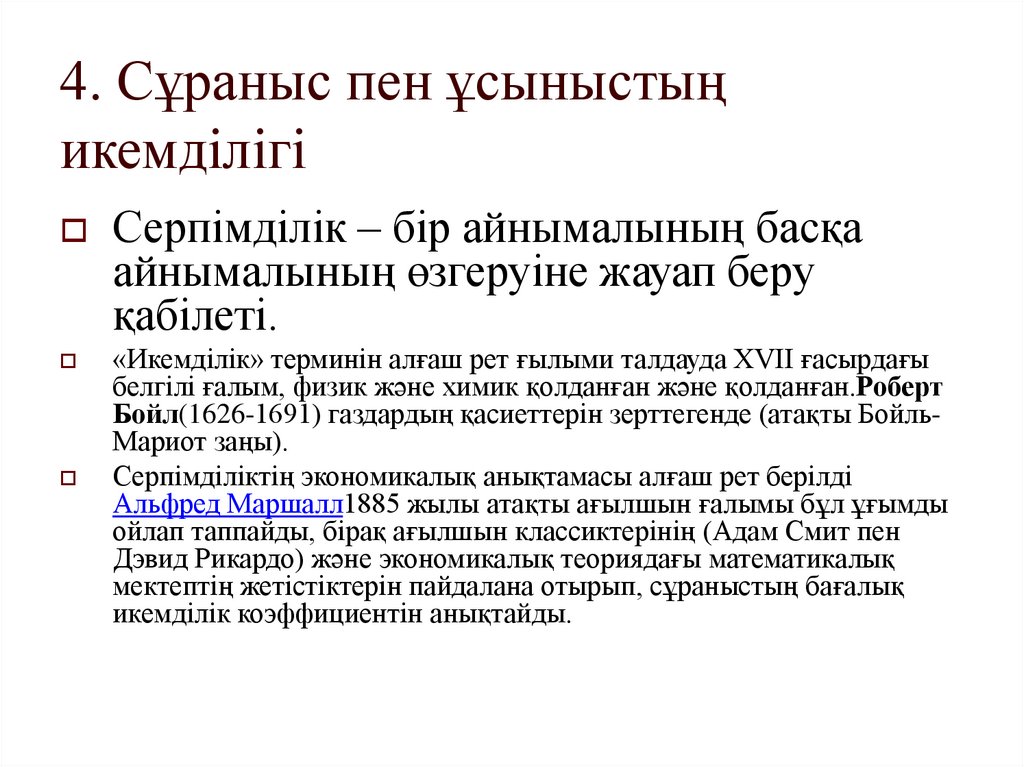4. Сұраныс пен ұсыныстыңикемділігі