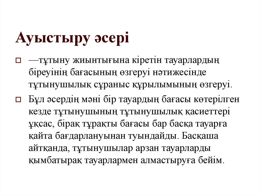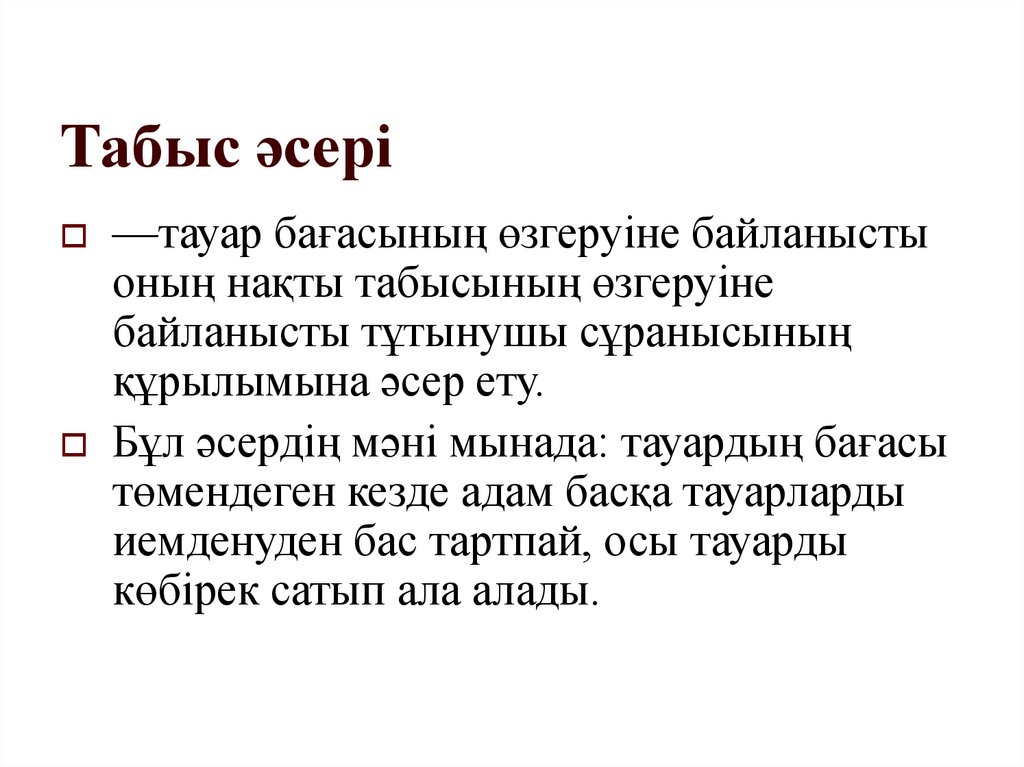 төмендеген кезде адам басқа тауарларды