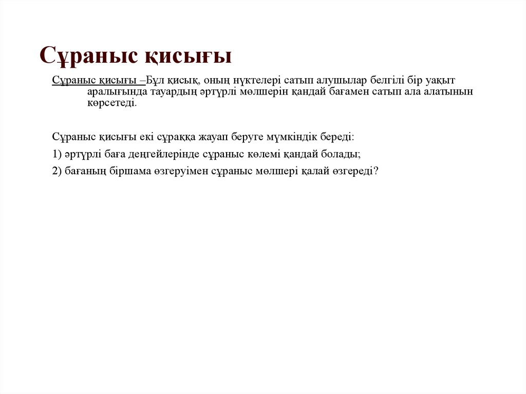 Сұраныс қисығыСұраныс қисығы –Бұл қисық, оның нүктелері сатып алушылар белгілі бір уақыт