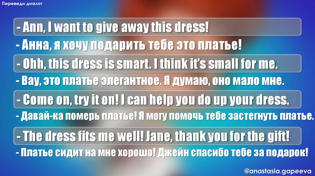 - Вау, это платье элегантное. Я думаю, оно мало мне.