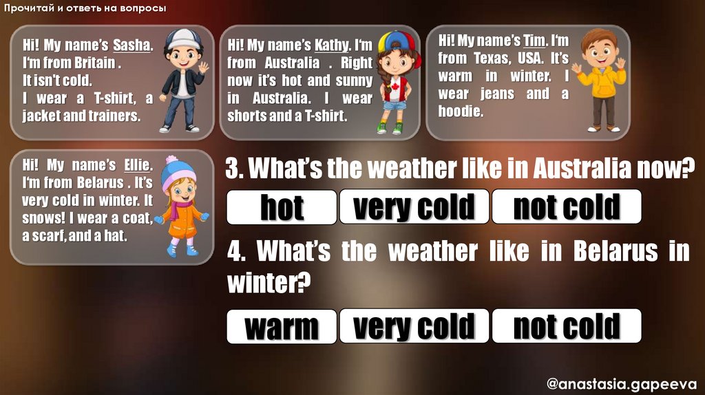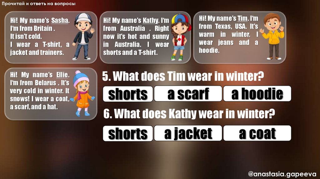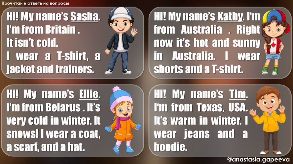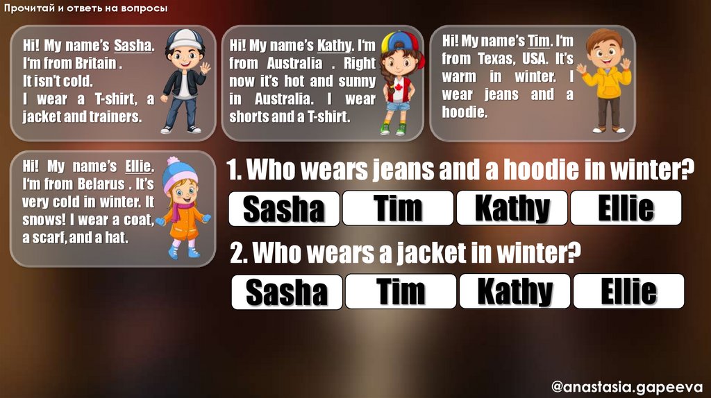 Прочитай и ответь на вопросыHi! My name’s Tim. I‘m