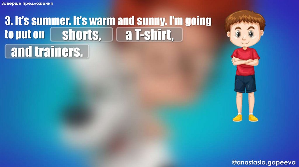 Заверши предложения3. It's summer. It’s warm and sunny. I’m going