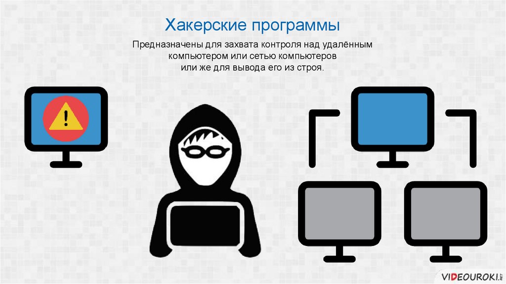Хакерские программыПредназначены для захвата контроля над удалённым