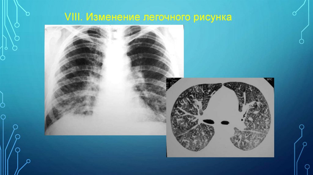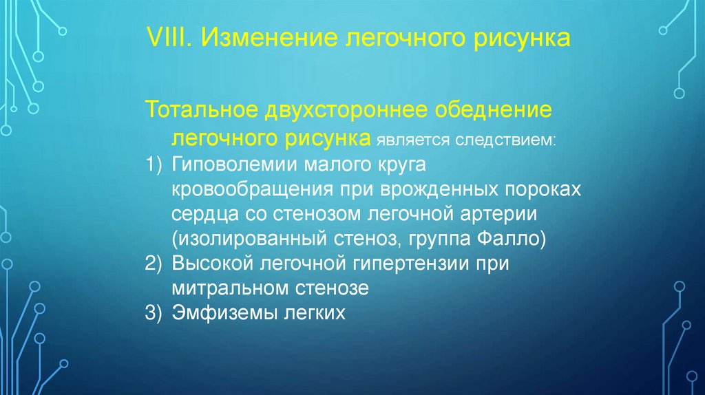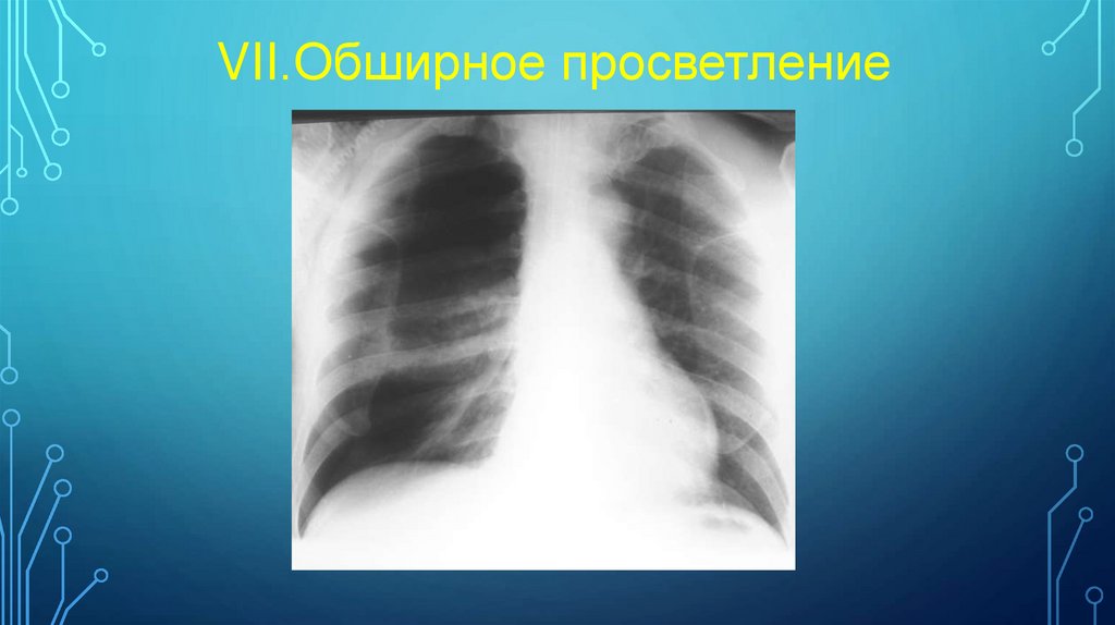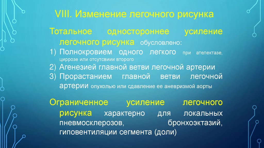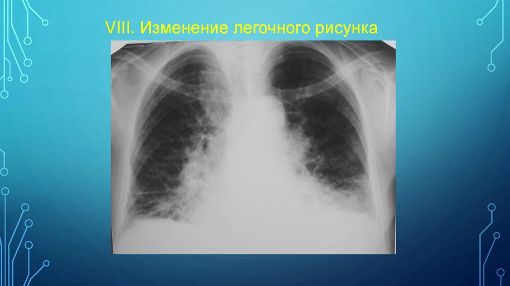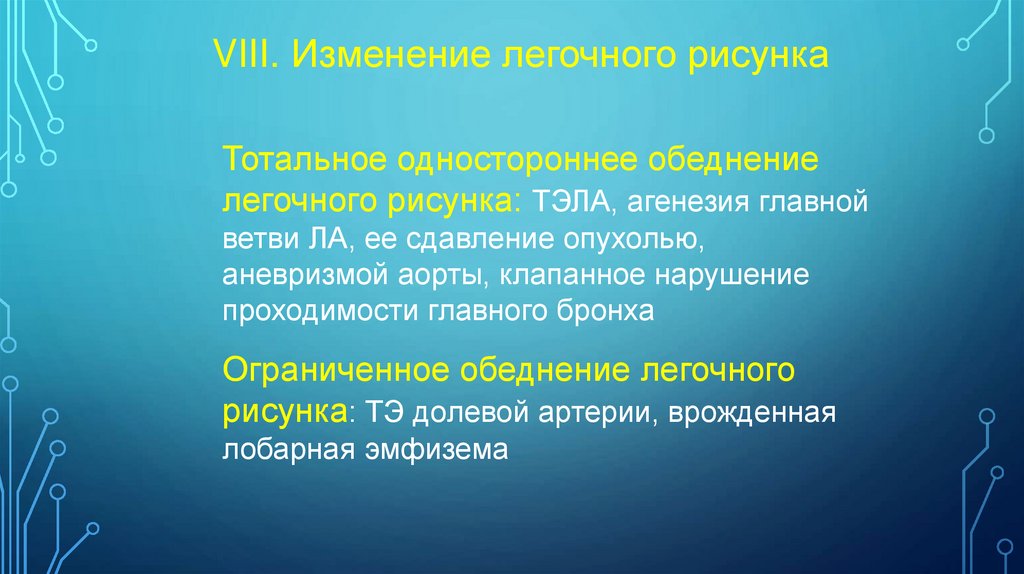 VIII. Изменение легочного рисункаТотальное одностороннее обеднение